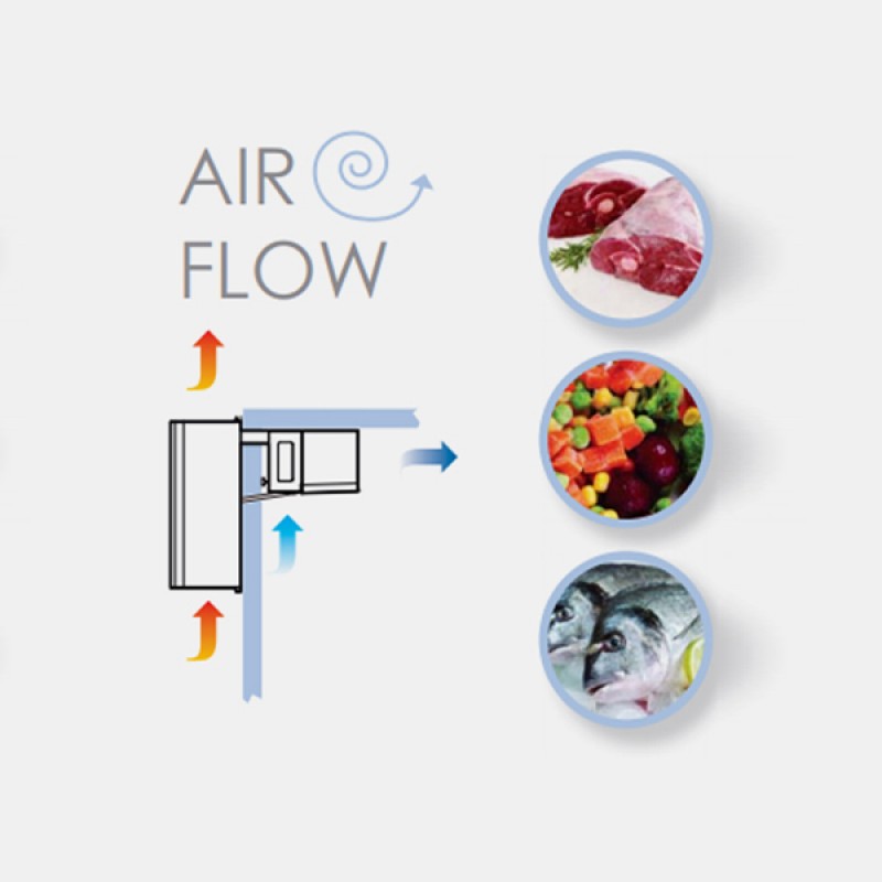 - Compact monoblock unit for a ceiling type installation. Flexible solution suitable for several applications in small cold-rooms and at different temperature ranges.